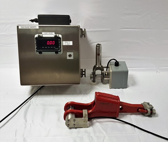 Euroload supply load pins to fit Crosby S-501 open swage sockets. The example above is customer specified, heavy duty ELT24 transmitter, 10 month battery life, heavy duty stainless steel IP66 panel housing, ELT24 telemetry receiver, Red Lion DC powered digital display with dual relay output.